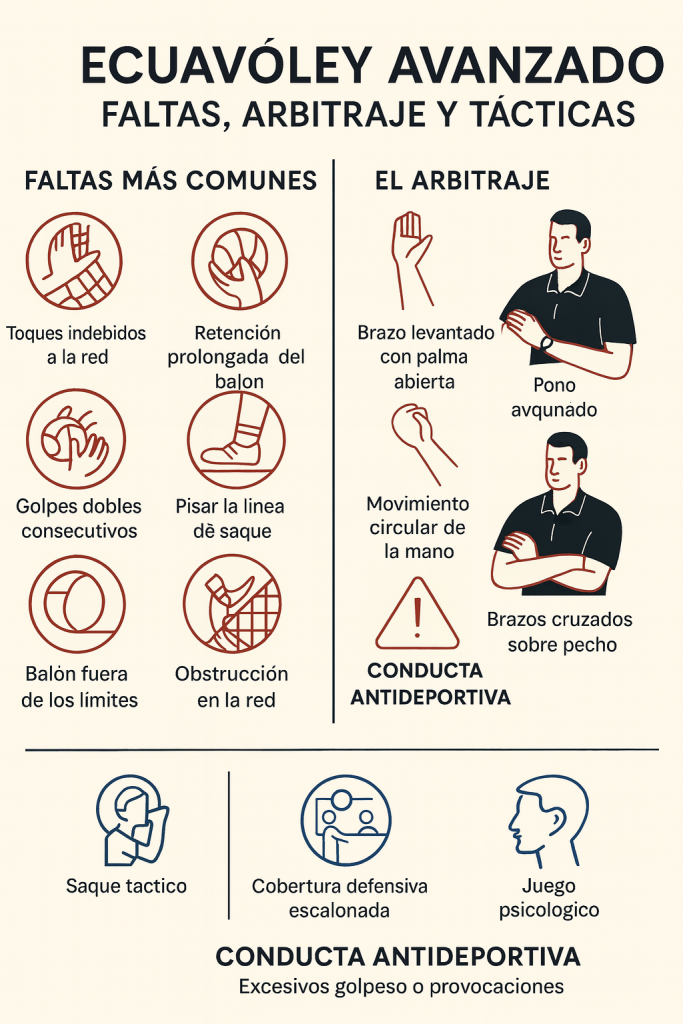 - Obstrucción en la red: Bloquear sin intención de devolver el balón o invadir el espacio contrario puede generar advertencias o sanciones.